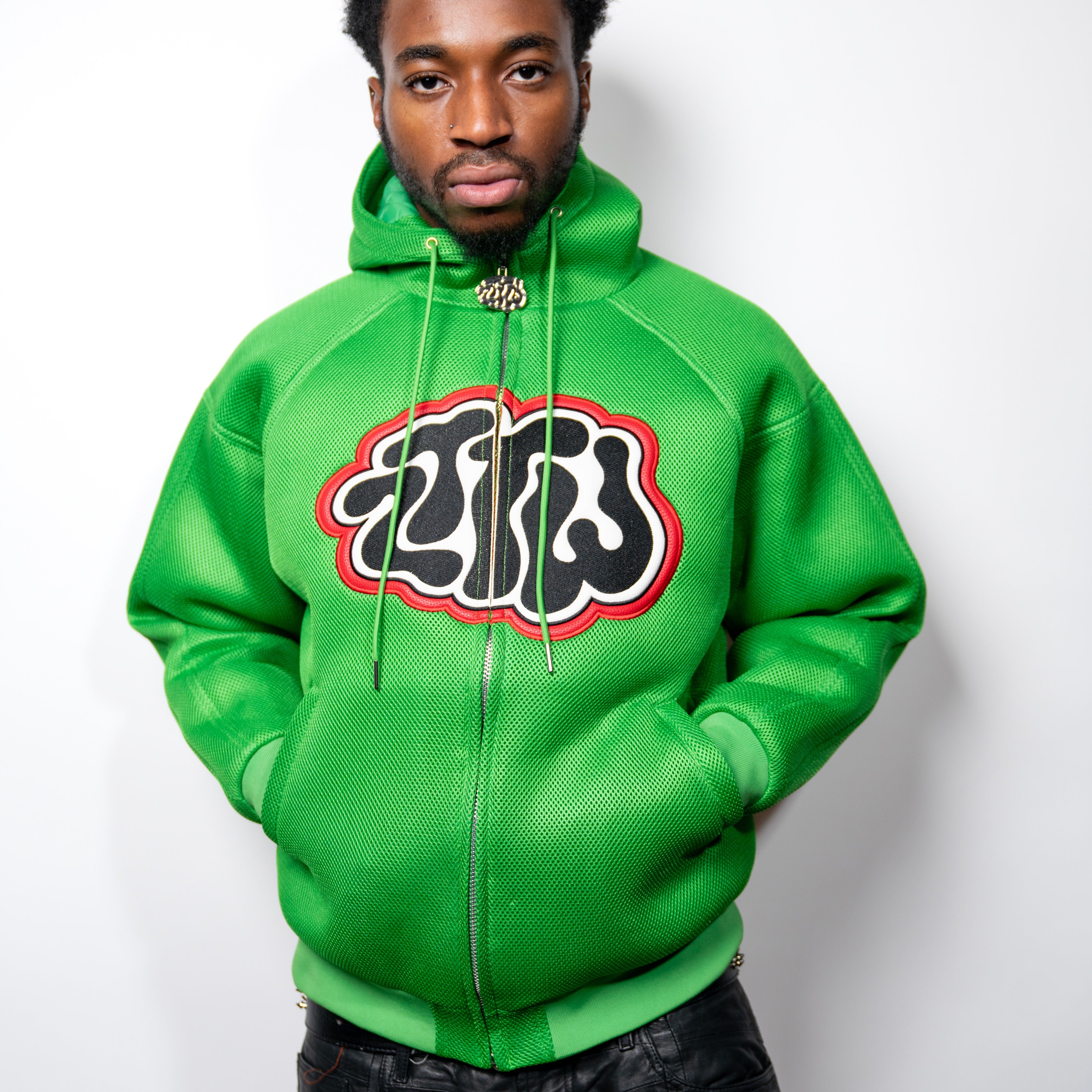 Green pigment zipper hoodie